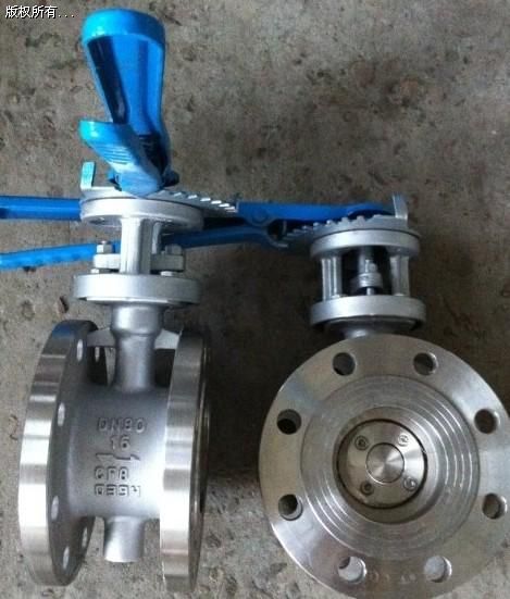 不銹鋼蝶閥作為一種用來實現(xiàn)管路系統(tǒng)通斷及流量控制的部件,已在石油、化工、冶金、水電等許多領域中得到極為廣泛地應用。在已公知的蝶閥技術中,其密封形式多采用密封結(jié)構(gòu),密封材料為橡膠、聚四氟乙烯等。由于結(jié)構(gòu)特征的限制,不適應耐高溫、高壓及耐腐蝕、抗磨損等行業(yè)。現(xiàn)有一種比較先進的蝶閥是三偏心金屬硬密封蝶閥,閥體和閥座為連體構(gòu)件,閥座密封表面層堆焊耐溫、耐蝕合金材料。多層軟疊式密封圈固定在閥板上,這種蝶閥與傳統(tǒng)蝶閥相比具有耐高溫,操作輕便,啟閉無磨擦,關閉時隨著傳動機構(gòu)的力矩增大來補償密封,提高了蝶閥的密封性能及延長使用壽命的優(yōu)點。但是,這種蝶閥在使用過程中仍然存在以下問題:一、由于多層軟硬疊式密封圈固定在閥板上,當閥板常開狀態(tài)時介質(zhì)對其密封面形成正面沖刷,金屬片夾層中的軟密封帶受沖刷后,直接影響密封性能。二、受結(jié)構(gòu)條件的限制該結(jié)構(gòu)不適應做通徑DN200以下閥門,原因是閥板整體結(jié)構(gòu)太厚,流阻大。三、因三偏心結(jié)構(gòu)的原理,閥板的密封面與閥座之間的密封是靠傳動裝置的力矩使閥板壓向閥座。正流狀態(tài)時,介質(zhì)壓力越高密封擠壓越緊。當流道介質(zhì)逆流時隨著介質(zhì)壓力的增大閥板與閥座之間的單位正壓力小于介質(zhì)壓強時,密封開始泄漏。高性能三偏心雙向硬密封蝶閥,其特征在于:所述閥座密封圈由軟性T形密封環(huán)兩側(cè)多層不銹鋼片組成。閥板與閥座的密封面為斜圓錐結(jié)構(gòu),在閥板斜圓錐表面堆焊耐溫、耐蝕合金材料;固定在調(diào)節(jié)環(huán)壓板之間的 彈簧與壓板上調(diào)節(jié)螺栓裝配一起的結(jié)構(gòu)。這種結(jié)構(gòu)有效地補償了軸套與閥體之間的公差帶及閥桿在介質(zhì)壓力下的彈性變形,解決了閥門在雙向互換的介質(zhì)輸送過程中存在的密封問題。采用軟性T型兩側(cè)多層不銹鋼片組成密封圈,具有金屬硬密封和軟密封的雙重優(yōu)點,無論在低溫和高溫情況下,均具有零滲漏的密封性能。試驗證明池正流狀態(tài)(介質(zhì)流動方向與蝶板轉(zhuǎn)動方向相同)時,密封面的壓力是傳動裝置的力矩和介質(zhì)壓力對閥板的作用產(chǎn)生的。正向介質(zhì)壓力增大時閥板斜圓錐表面與閥座密封面擠壓越緊,密封效果越好。當逆流狀態(tài)時,閥板與閥座之間的密封靠驅(qū)動裝置的力矩使閥板壓向閥座。隨著反向介質(zhì)壓力的增大,閥板與閥座之間的單位正壓力小于介質(zhì)壓強時,調(diào)節(jié)環(huán)的彈簧在受載后所儲存的變形能補償閥板與閥座密封面的緊壓力起到自動補償作用。因此本實用新型不像現(xiàn)有的技術那樣,在閥板上安裝軟硬多層密封圈,而是直接安裝在閥體上,在壓板和閥座中間增設調(diào)節(jié)環(huán)是十分理想的雙向硬密封方式。它將可取代閘閥、截止閥及球形閥本類閥門在管道中一般應當水平安裝。形式分類按結(jié)構(gòu)形式分類(1)中心密封蝶閥(2)單偏心密封煤閥(3)雙偏心密封蝶閥(4)三偏心密封跺閥按密封面材質(zhì)分類(1)軟密封蝶閥。1)密封副由非金屬軟質(zhì)材料對非金屬軟質(zhì)材料構(gòu)成。2)密封副由金屬硬質(zhì)材料對非金屬軟質(zhì)材料構(gòu)成。(2)金屬硬密封蝶閥。密封副由金屬硬質(zhì)材料對金屬硬質(zhì)材料構(gòu)成。按密封形式分類(1)強制密封蝶閥1)彈性密封蝶閥。密封比壓由閥門關閉時閥板擠壓閥座,閥座或閥板的彈性產(chǎn)生2)外加轉(zhuǎn)矩密封蝶閥。密封比壓由外加于閥門軸上的轉(zhuǎn)矩產(chǎn)生(2)充壓密封蝶閥。密封比壓由閥座或閥板上的彈件密封元件充壓產(chǎn)生(3)自動密封蝶閥。密封比壓由介質(zhì)壓力自動產(chǎn)生。按工作壓力分類(1)真空蝶閥。工作壓力低于標堆大氣歷的蝶閥。(2)低壓蝶閥。公稱壓力PN<1.6MPa的蝶閥。(3)中壓蝶閥。公稱壓力PN為2.5--6.4MPa的蝶閥。(4)高壓碟閥。公稱壓力PN為10。0--80.0MPa的蝶閥。(5)超高壓蝶閥。公稱壓力PN>100MPa的蝶閥。按工作溫度分類(1)高溫蝶閥。t>450 C的蝶閥(2)中溫碟閥。120 C<t<450 C的蝶閥(3)常溫蝶閥。一40C<t<;120 C的蝶閥(4)低溫蝶閥。一100<t<一40 C的蝶閥(E)超低溫蝶閥。t<一100 C的蝶閥按連接方式分類(1)對夾式蝶閥(2)法蘭蝶閥(3)支耳式蝶閥(4)焊接式蝶閥優(yōu)缺點不銹鋼蝶閥的優(yōu)缺點1、不銹鋼蝶閥的優(yōu)點1、啟閉方便迅速、省力、流體阻力小,可以經(jīng)常操作。2、結(jié)構(gòu)簡單,體積小,重量輕。3、可以運送泥漿,在管道口積存液體最少。4、低壓下,可以實現(xiàn)良好的密封。5、調(diào)節(jié)性能好。不銹鋼蝶閥的缺點1、使用壓力和工作溫度范圍小。2、密封性較差。不銹鋼蝶閥按結(jié)構(gòu)形式可分為偏置板式、垂直板式、斜板式和杠桿式。按密封形式可分為較密封型和硬密封型兩種。軟密封型一般采用橡膠環(huán)密封,硬密封型通常采用金屬環(huán)密封。按連接型式可分為法蘭連接和對夾式連接;按傳動方式可分為手動、齒輪傳動、氣動、液動和電動幾種。不銹鋼蝶閥銹蝕原因分析及解決方法不銹鋼蝶閥在使用過程中出現(xiàn)銹蝕現(xiàn)象。經(jīng)過金相組織分析、染色試臉、熱處理試臉、SEM等試驗分析,找到了材料銹蝕的關鍵因素是因為材